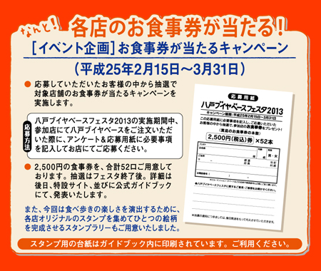 | ・2013/2/5 | 参加店一覧ページ 更新しました。 |