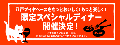 ①八戸産の魚介類をふんだんに使用! 八戸港に水揚げされる魚介類を最低4種類以上使います。野菜(ハーブ類、にんにく、トマト等)も地元産のものをできるだけ使います。 ②八戸流は二度おいしい! まずは八戸の魚介類のおいしさをそのまま味わいます。次に、魚介のだしたっぷりのスープを活かした各店オリジナルの“締めの一皿”を用意します。魚介類もスープも「一皿で二度おいしい」八戸流のブイヤベースの楽しみ方です。 |