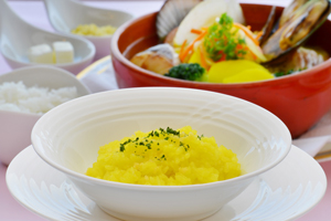 その爽やかな香りが、八戸の魚介のおいしさをより一層引き立てます。シェフがフランス修業時代の本場の味を思い出しながら作り上げました。