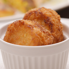 魚介のクロメスキ(クリームコロッケ)カニのだしがきいたクロメスキ(クリームコロッケ)をタイミングよくお出しします。 そのまま食べてもおいしいですが、ブイヤベーススープとともにお召し上がりいただくと、一味違ったおいしさとなります。 |