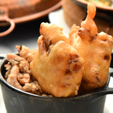おいしいタコ料理をたっぷりと鍋とともにお召し上がりください。タコの煮汁で炊いたタコ飯とやわらかいタコのかき揚げ天ぷら。どちらもスープといっしょにまぜて食べるのがおすすめ。ポルトガル風の締めの天丼です。