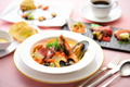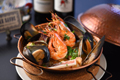 ブイヤベーススープに魚のだし汁を加えたWスープで魚介の旨みたっぷり。