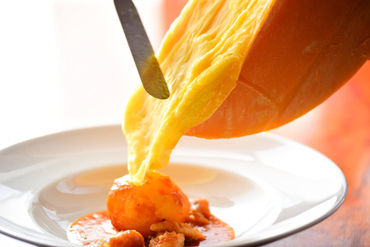スープでしっかり煮込んだじゃがいもをトロトロ削りたてのラクレットチーズとともに。スイス気分を味わえる、寒い冬にぴったりの温かい一皿。※ランチコースはブイヤベーススープのリゾットです